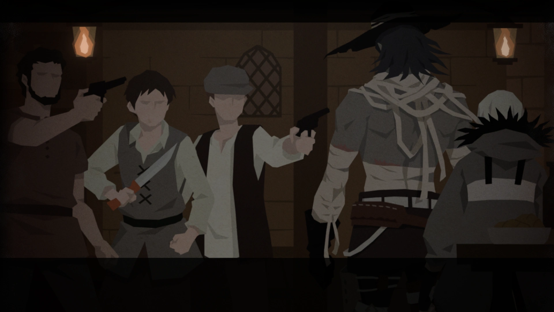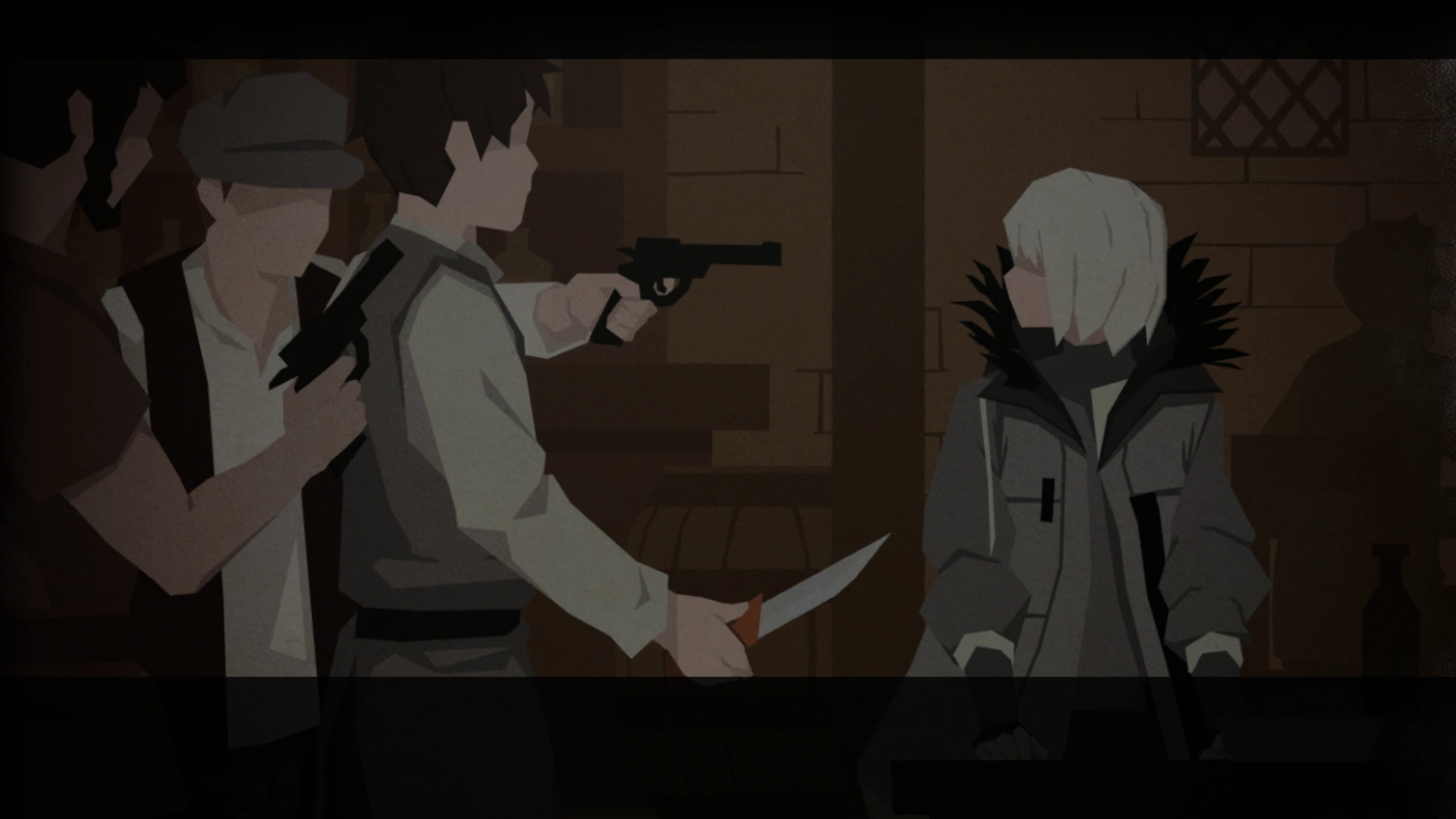 The townsfolk begin to close in. Their smiles are gone; they stare at the pair with empty eyes. They carry knives. Blades. Guns. Each weapon glints menacingly in the dim light. It is clearly no idle threat. The man strands before the boy like a wall.
