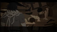 The man looks up from his defeated foes. The bandages covering his face have slipped in the scuffle, baring his visage to the world. His face is covered in a crisscross of scars. It is the face of a weapon sent to ware before being discarded like so much trash. The boy gazes upon him with sorrowful eyes before reaching out and laying one hand on his rough, craggy cheek.
