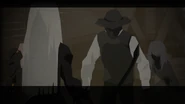 She peels the wanted poster off the board and takes her leave of the establishment. Her mission in life is to find such men and snuff them out.
