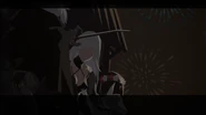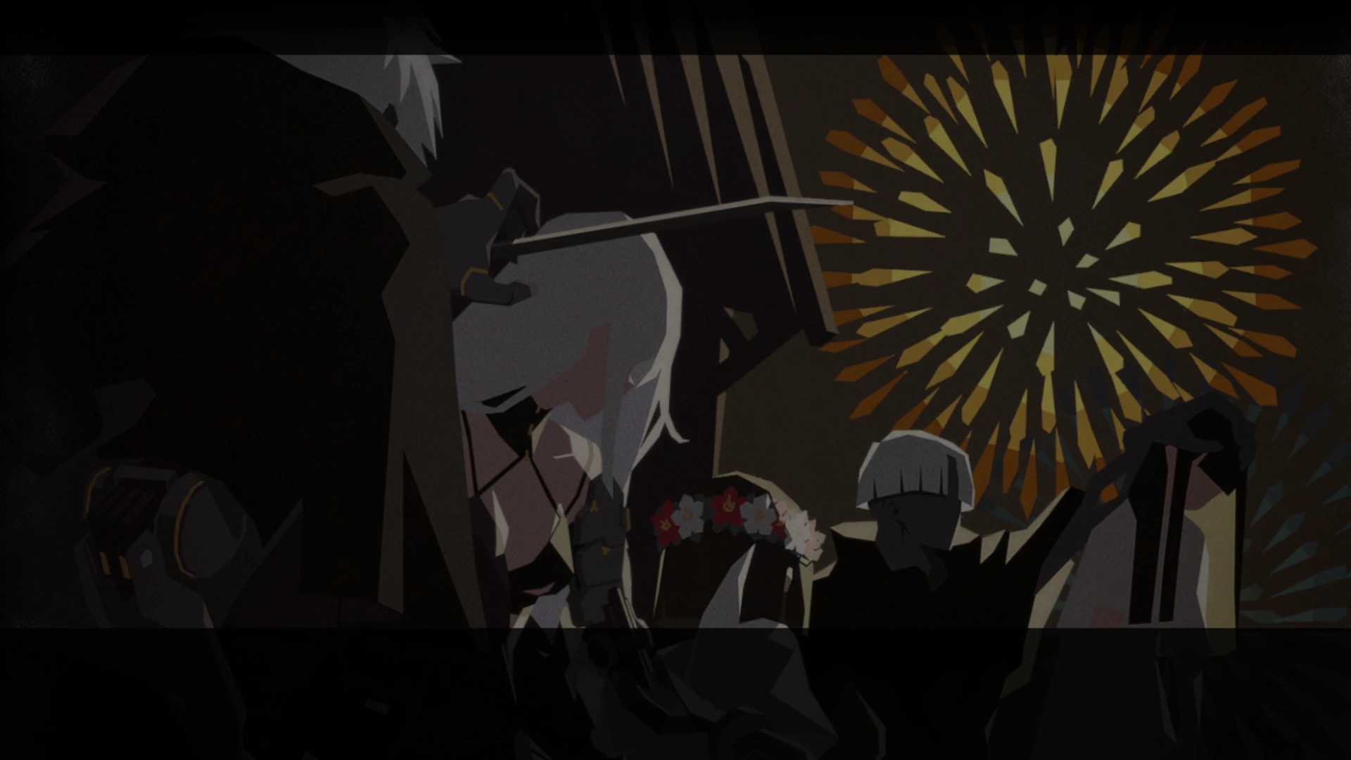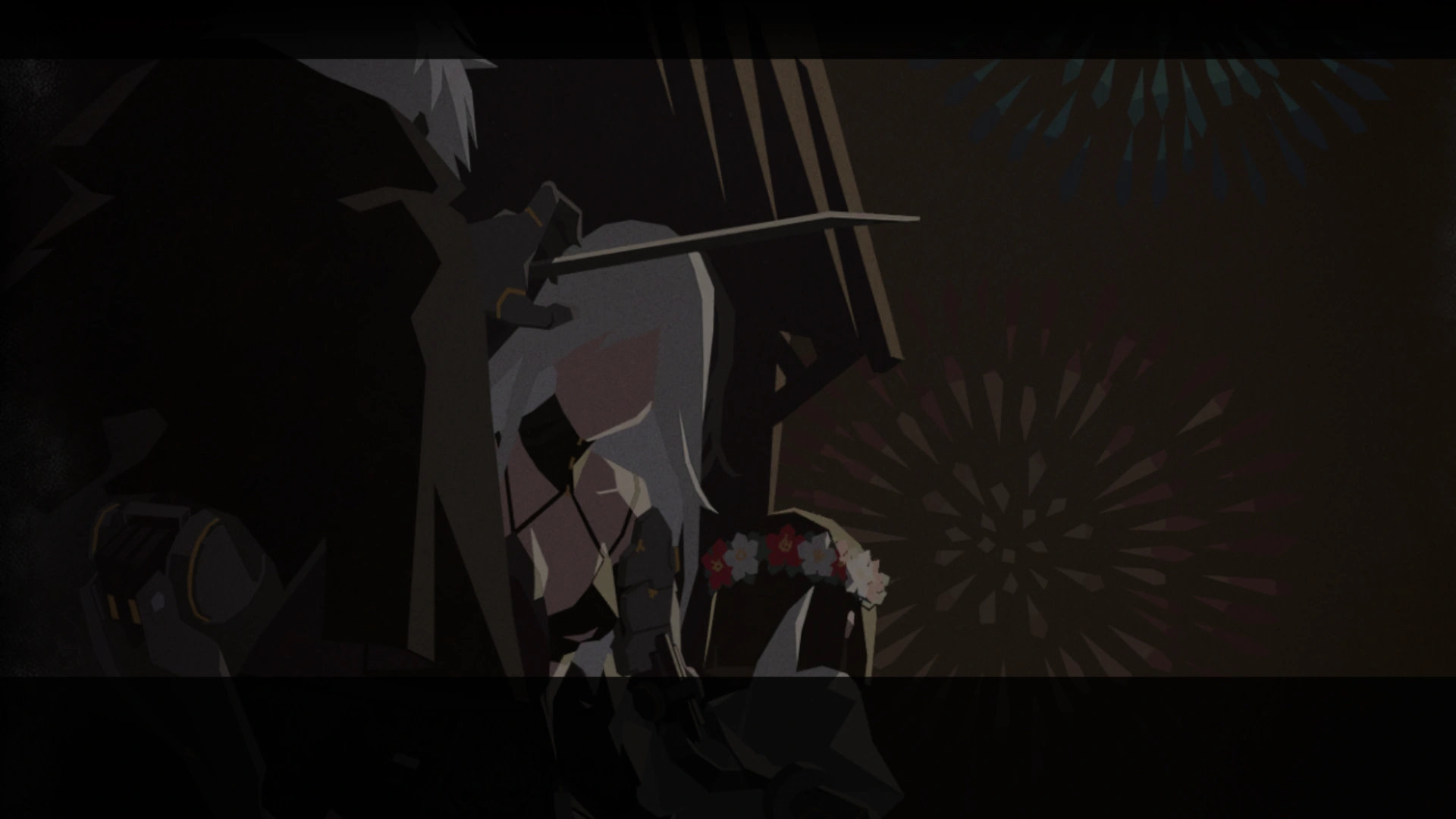Bloodied clockwork men begin emerging from nearby homes, one after the other. Each carries the corpse of a parent high in the air, as if displaying the fruits of a great hunt. Lit by the explosion of a firework, she can see it all far too clearly.