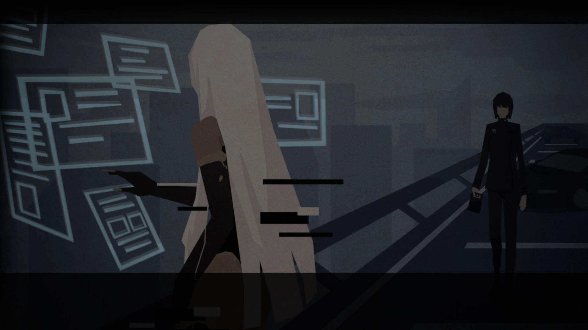 The voice belongs to a woman with an intelligent glint in her eyes; her words pull the girl back from the depths of her reverie. The woman is a minister who has served with loyalty and skill since the day the girl was awakened. Her favorite notebook in hand, she approaches the projection of the girl. The girl's sensors detect the faint scent of ink as the minister swiftly goes about her writing. After a quick, final glance at the numbers, the girl closes that datastream and accompanies the woman to her next task.
