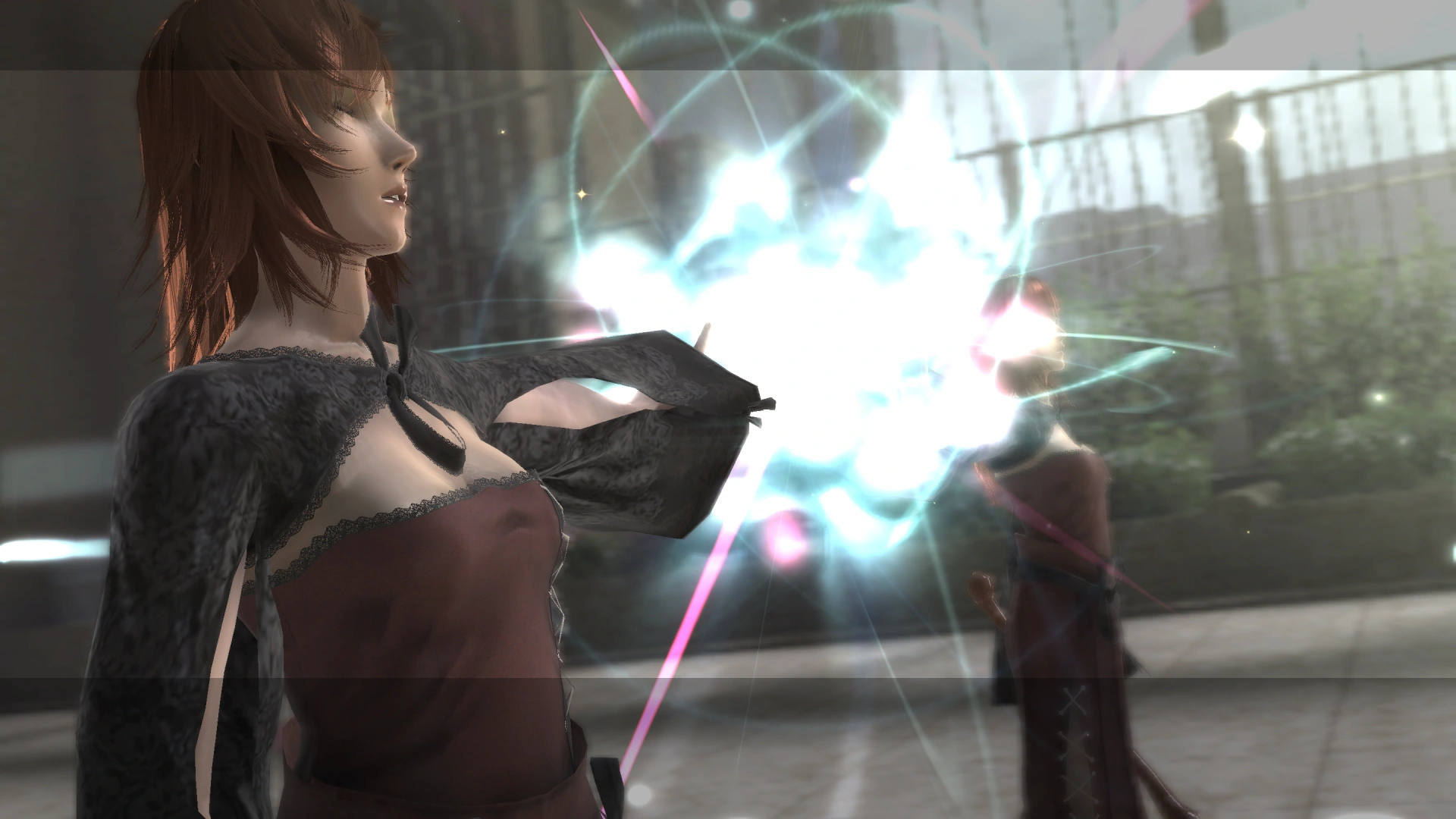 The remaining group are met with more resistance in the hallway leading to the Shadowlord's chamber, where they spot Yonah sound asleep at the other end of the room. Before Nier could get to her, the Shadowlord emerges from the ground and blocks their path. They face Grimoire Noir first, who they quickly dispatch, but the Shadowlord is shown to possess his own magic independent from the book. As they fight, Yonah awakes, pleading with them to stop, before telling the Shadowlord she could no longer occupy her body as she hears its consciousness calling out to Nier. Despite the Shadowlord's pleas, Yonah's Gestalt makes her way to the window, exposing herself to sunlight and committing suicide.