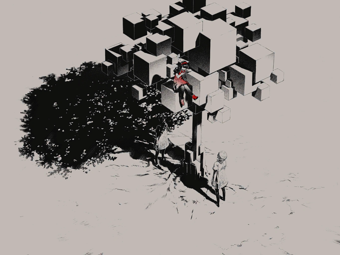 She appeared. The Red Girl then reaches out to Her,