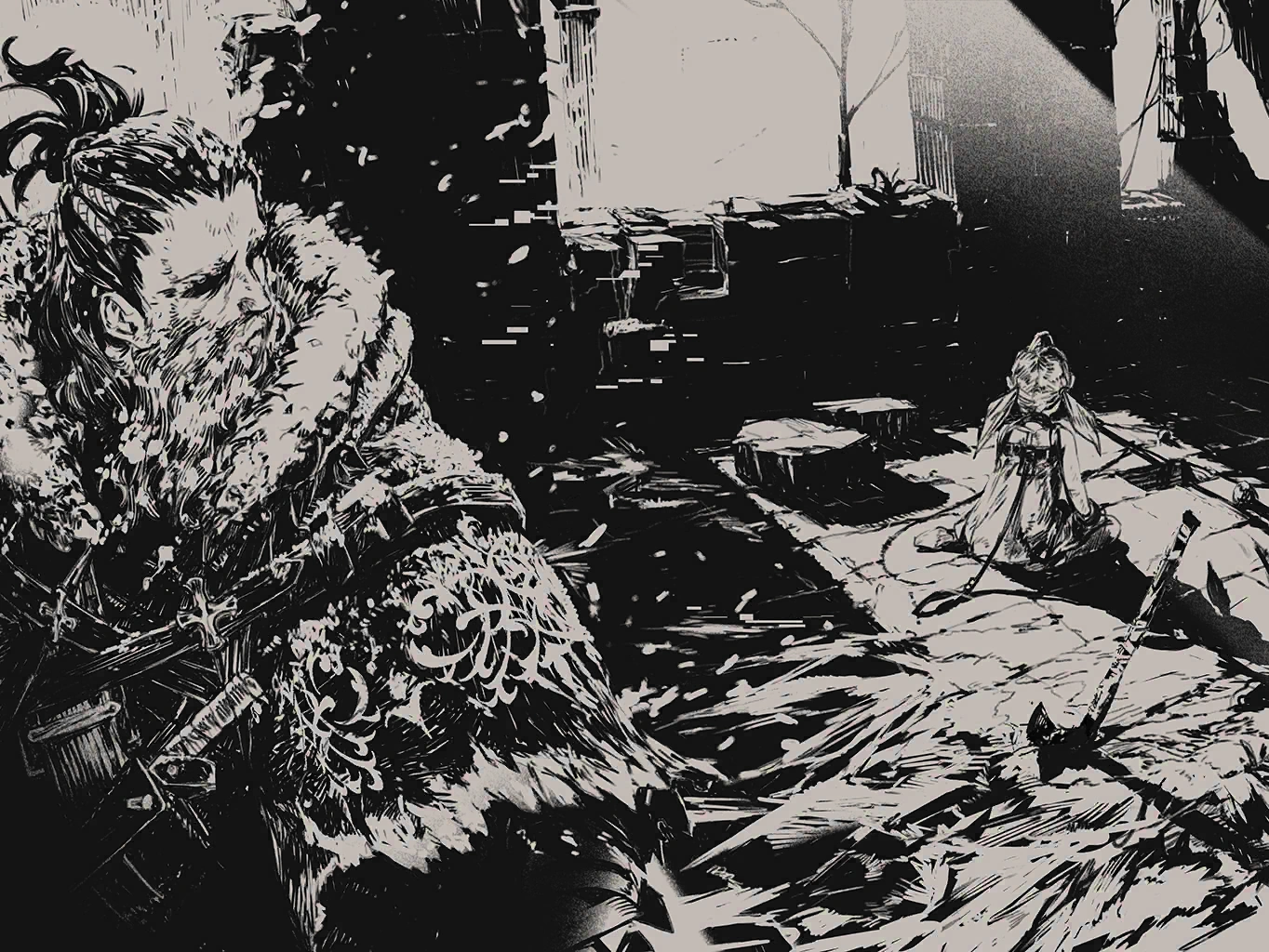 a figure emerges from it: it is a projection of the sword's past wielder,