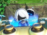 A VIP bot (special bots dressed as characters associated with the PlayStation brand and can be equipped with accessories won from the Gatcha machine, giving them unique animations when observed and interacted with at the Crash Site) representing 2B was added to Astro Bot in the second round of "Vicious Void" levels released on July 10, 2025, awarded for completing the level "Suck It Up" for the first time. Unlocking the bot's accessory in the Gatcha machine will make it appear alongside a representation of Pod 042, with the pair fishing in a small body of water near the Gatcha machine building. Should Astro punch them the Pod 042 companion will yank a random object out of the water.
