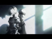 It is revealed that after detonating their black boxes, 2B's data was uploaded back to the Bunker and transferred to a new body, ensuring her survival. However, as there wasn't enough bandwidth and time, 9S only managed to send 2B's memories with his only intact up to the point of before meeting her. Realizing that 9S has forgotten her yet again, 2B clenches her fist in frustration.