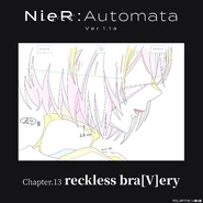 During the events of the NieR:Orchestra Concert 12024 [ the end of data ], after the Ending E epilogue, 9S arrives sometime after 2B repairs him. Since the Bunker is destroyed, they are unable to source additional replacement parts, and the resistance is also unable to help as their parts are incompatible with YoRHa androids. The two set off, heading for transporters in the hope that they might contain materials for use. However, they only find strange images, memories of the old world.