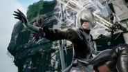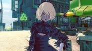 2B appears as a guest fighter on DLC, wielding her Virtuous weapons by default. A trailer was released of the character on October 27th, 2018. She was officially released to all platforms on December 18th, 2018.