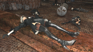 - Finisher - Pressing the action button on a downed or otherwise disabled enemy will perform a randomly-selected attack animation that does a fair amount of damage if it connects. This attack may fail to connect properly if, for example, the launcher finisher is randomly selected on an enemy that cannot be launched.