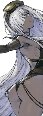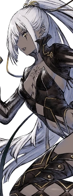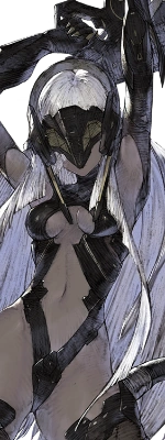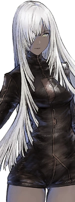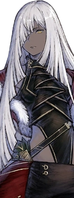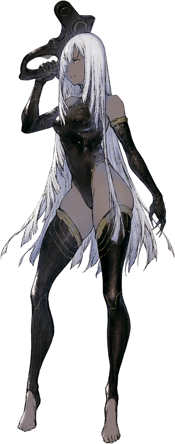 Yurie takes the appearance of a young woman with long white hair and yellow irises. The left eye is white, whereas the right eye, covered by her hair is entirely black with a red ring around the pupil, indicating the "lack" of a right eye. She wears a black leotard with gold accents along with long black gloves and toeless stockings that go up to her mid thighs.