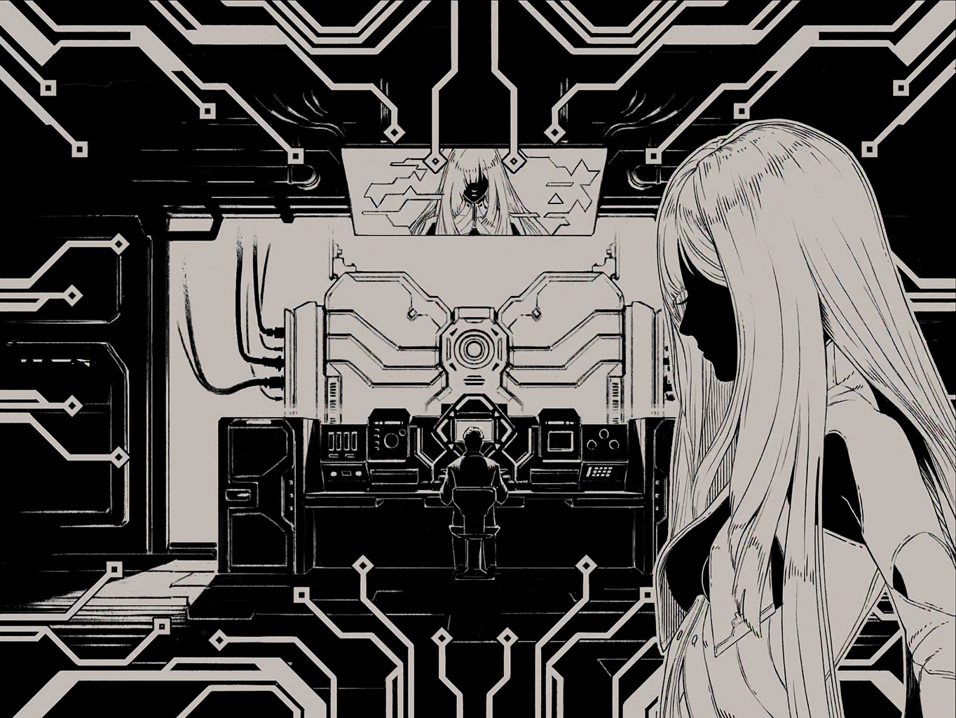 Though recently awakened, she has knowledge that was previously saved in her memory banks. According to it, there should be another artificial intelligence she is to rule in tandem with—and yet, this does not appear to be the case.